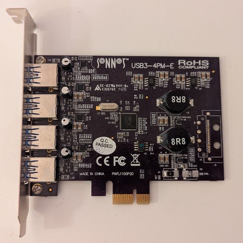 Ubrukt PCIe til SFF-8087-adapter. Kortet har fire SFF-8087-porter som støtter opp til 16 SATA-enheter. Vær oppmerksom på at kortet kun støtter SATA-disker, ikke SAS-disker. Tillater hot-swap og fungerer for Linux og Windows. SATA3 6 Gbps.