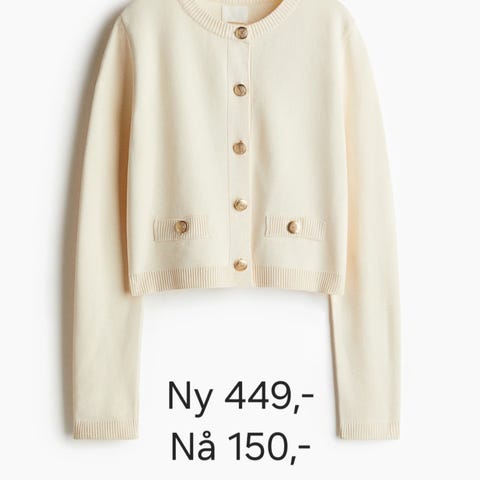 Gina Tricot cardigan i ull blanding for dame i størrelse XS. Kort modell med korte ermer og rund hals. Jakken har knappelukking foran og ribbestrikkede kanter ved hals, ermer og nederkant. Fargen er gul.