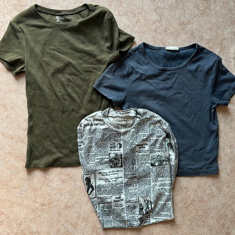 Selger tre enkle og fine topper (2 kortermede og 1 langermet).