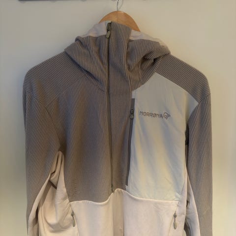 Norrøna Warmwool2 hettejakke for herre i størrelse M. Jakken har hel glidelås foran, fast hette og to sidelommer med glidelås. Farge i to grønntoner. Materialet er Warmwool2, et teknisk ullmateriale som gir isolasjon og komfort. Egnet som mellomlag eller ytterlag ved fottur og annen friluftsbruk i kjøligere vær.