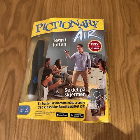Pictionary Air familiespill med digital tegnepenn. Spillet kombinerer fysisk kortstokk med en elektronisk tegnepenn som lar spilleren tegne i luften. Tegningene vises på skjerm via Pictionary Air-appen som kan lastes ned til kompatible smarttelefoner og nettbrett, og eventuelt speiles til TV.