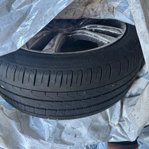 Felgene leveres med Nokian vinterdekk med pigger i god stand. Dekkene er brukt, men har fortsatt godt mønster og fungerer bra under norske vinterforhold.