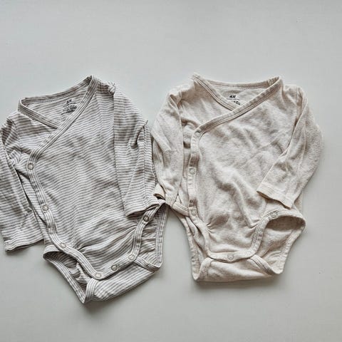 Pakke med nøytrale bodyer i forskjellige armlengder.