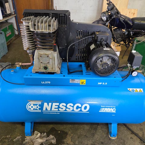 Stor Biltema kompressor 30v-50 93db. Selger da den ikke blir så mye brukt i mitt eie. av og på knapp deksel er knukket litt men alt virker som det skal. Slange kan følge med på kjøpet.