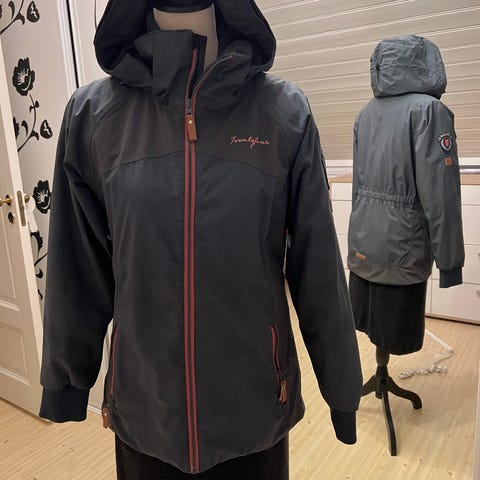 Twentyfour ytterjakke for dame i størrelse 40. Jakken er svart, 100% nylon. Jakken har hette, glidelås med trykknapper i front og flere lommer. Innvendig har jakken vattert fôr kombinert med mykt teddyfôr øverst. Passer som ytterjakke til hverdagsbruk, god og varm i kjøligere vær.