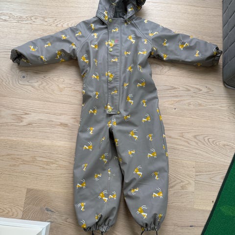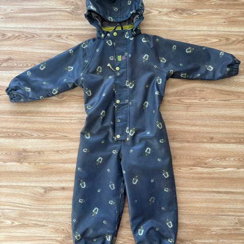 Brukt av to barn. Litt slitasje og et par mikroskopiske hull på knær/bein, ellers hel.