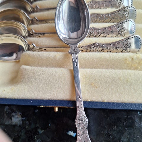 Teskjeer i sølv med mønster opphøyd rose 🌹