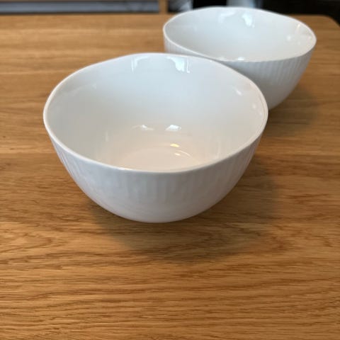 Ingen riper eller skarr i porselenet ettersom det er helt ubrukt😊 Lugget i oppbevaring i silkepapir, selges nå pga flytting.