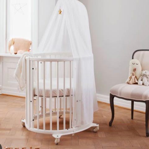 Selger Stokke Sleepi mini med tilhørende madrass, laken og himmelseng. Svært pent (og lite) brukt.