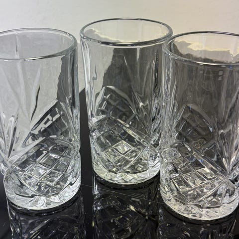 krystallglass, longdrink glass, highball glass, slipte glass, vintage glass, bar glass, cocktailglass, stjernemønster, tung bunn, selskapsservise, klassisk krystall, vannglass, festglass