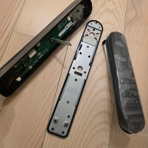 Pakken inneholder blant annet låskasse, sluttstykker, monteringsskruer, dekkplater, håndtak, elektroniske komponenter og batterier, slik det fremgår av bildene. Egner seg for dører til bolig hvor man ønsker nøkkelfri adgang med elektronisk styring.