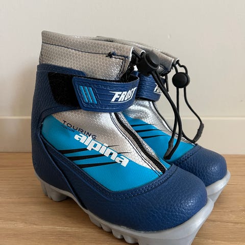 Alpina langrennsstøvler for barn i lilla og svart. Støvlene har borrelåslukking over vristen for enkel justering og god passform. Overdelen er høy for ekstra støtte rundt ankelen, og innsiden ser ut til å ha myk og isolerende fôring som gir varme på kalde dager. Sålen er tilpasset moderne langrennsbindinger (se bilder for detaljert såle- og bindingssystem). Lite bruk.