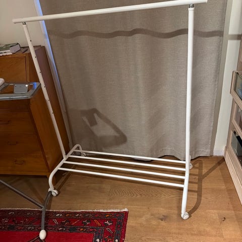 2 stk garderobe stativ gis bort mot henting. 1 svart, 1 hvit.