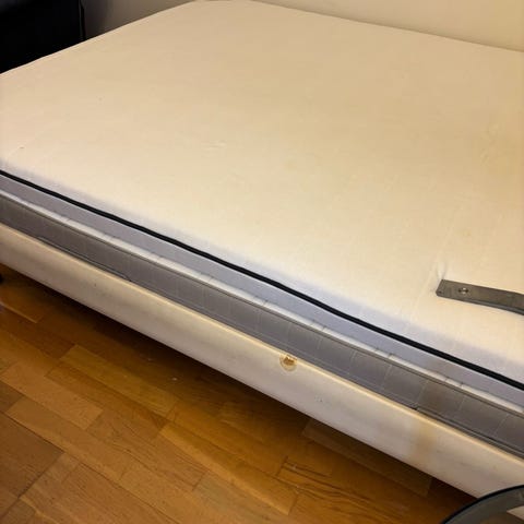 Sengen er demontert, derfor begrenset med bilder. Madrass og overmadrass følger med.