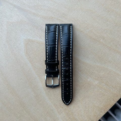 Svart, krokodillemønstret 18 mm klokkerem i ekte skinn.