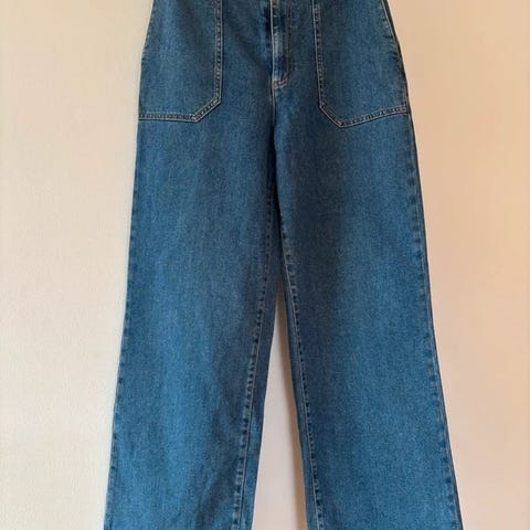 Jeans fra H&M, str 38. Høy midje og vide ben. Så og si ubrukt :)