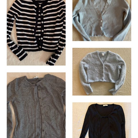 6 gensere størrelse 134/140 fra Cubus, HM, KappAhl, Gant. Grønn genser har en del masker som er løse. Selges samlet for 500,