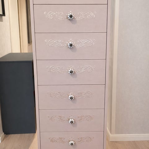 Jeg selger en oppusset liten kommode / skjenk som kan brukes både i stue, gang og soverom.