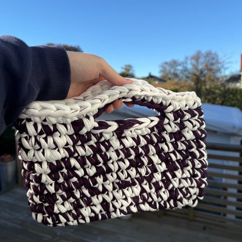 💙🤍Håndlaget, heklet clutch - 19x10cm ramme. I blått og hvitt, sløyfen kan tas av