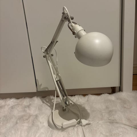 Fungerer som den skal. Justerbar arm og skjerm – perfekt til skrivebord eller lesekrok.
