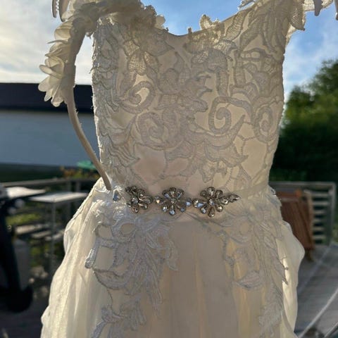Brudepike kjoler str 128 & str 110/116 m/strømpebukser, belte og hårbøyle