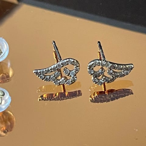 K18 japansk hvitt gull med diamanter til salgs pga. ikke bli brukt lenger.