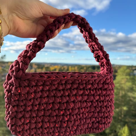 ❤️Håndlaget, heklet clutch - 19x10cm ramme i rødt med paljetter/glitter
