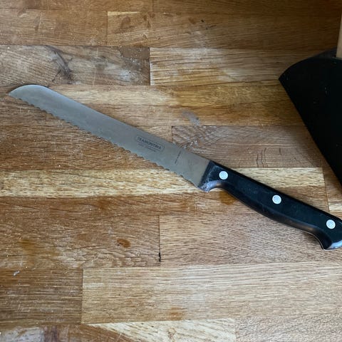 Fiskars smørekniv med tagget blad og svart håndtak i plast. Kniven har kort blad som egner seg til smøring av pålegg og enkel oppskjæring ved frokost- og lunsjtilberedning. Passer til daglig bruk på kjøkkenet.