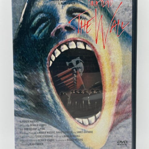 Pink Floyd The Wall DVD med filmutgave av albumet «The Wall». Standard DVD-utgivelse i plastomslag med trykket cover foran og bak. Aldersgrense 15 år, regionkode 2/Pal (oppgitt på omslaget). Egner seg for avspilling på kompatible DVD-spillere som støtter denne regionkoden og formatet.