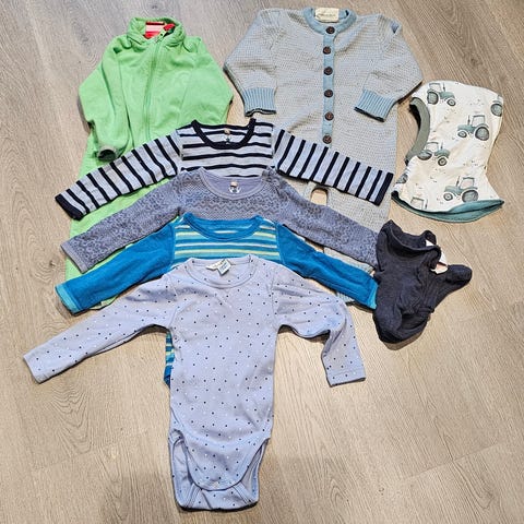 Ullsokker i størrelse 74-80. Pysjamaser, bodyer, strømpebukser og gensere