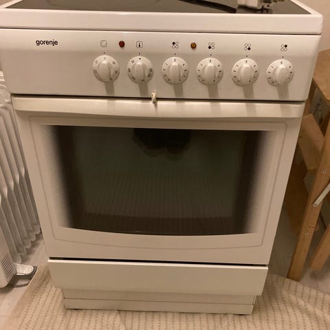 Electrolux keramisk komfyr med platetopp og stekeovn. Komfyren har keramisk koketopp med flere kokesoner og frontplasserte brytere for betjening. Stekeovnen har glassdør som gir innsyn til ovnsrommet.