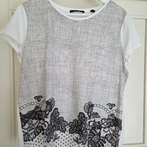 Esprit topp for dame i størrelse XL. Topp i svart viskose med mykt og lett fall. Modellen har omslagseffekt foran og trekvart lange ermer. Passer til hverdagsbruk eller enklere penere anledninger, og kan kombineres med både bukser og skjørt.