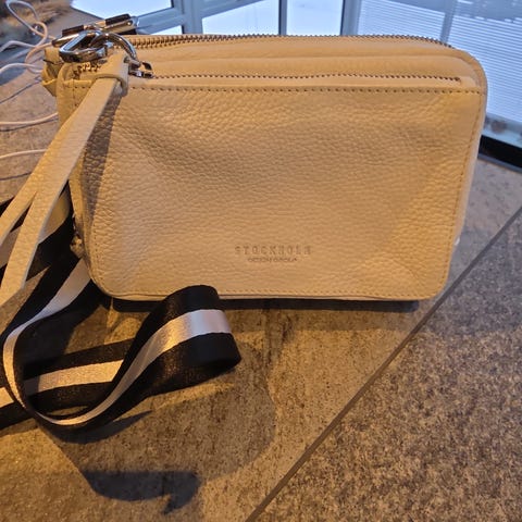 Stockholm Design skulderveske for dame i lær. Vesken er svart med to skulderstropper og åpen hoveddel. Innvendig har den en mindre lomme og lukkes med trykknapp. Passer til hverdagsbruk, jobb eller studier med plass til det meste man trenger å ha med seg.