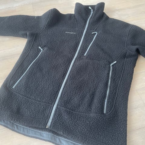 Stormberg jakke for herre i størrelse L. Jakken er svart og laget i polyester med myk, lodden utside. Den har hel glidelås i front, to sidelommer med glidelås og en brystlomme med glidelås i kontrastfarge. Jakken har høy krage og rette ermer. Materialet er sertifisert etter Oeko-Tex Standard 100 ifølge vaskelappen. Passer som mellomlag eller ytterjakke i mildere vær.