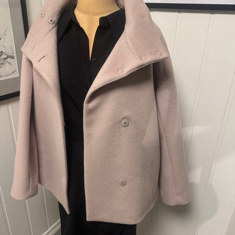 Selected Femme kåpe i ull for dame i størrelse M. Kåpen har knapper i front, høy krage og skrålommer i sidene. Den er helfôret på innsiden for økt komfort. Flerfarget nyanse som på bildene, med klassisk og rett passform som passer til hverdagsbruk og mer formelle anledninger i kjøligere vær.. selger en lys og en sort i str 40 begge 2. selges 800kr stk. Nydelige kåper som er blitt for store for meg