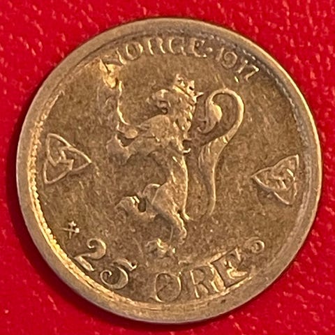 Norge 25 øre 1909 Sølv dette var første 25 øre til Kong Haakon