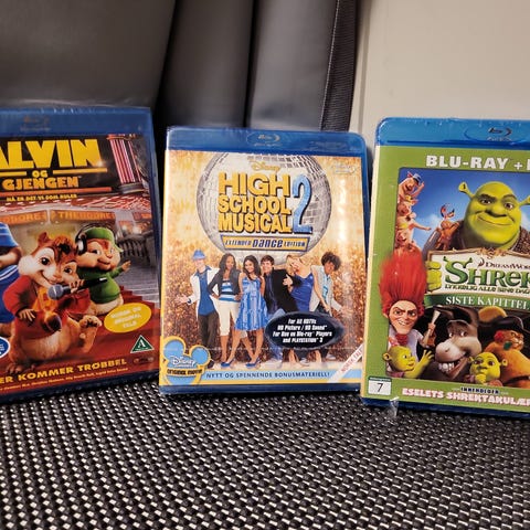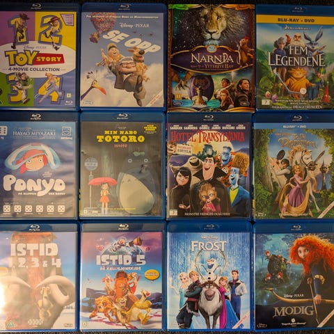 Pakke med flere Blu-ray barnefilmer.