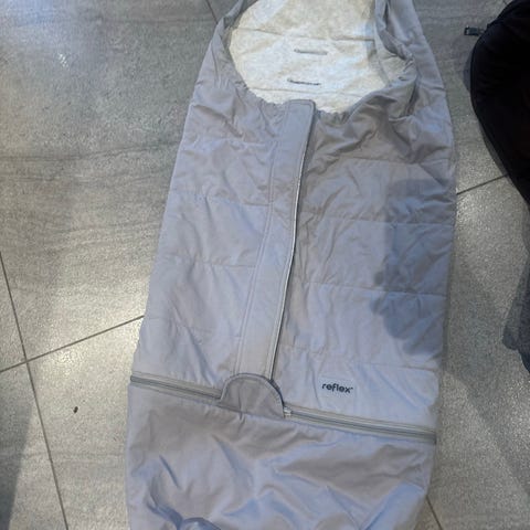 Varm og god og alt fungerer. Ull i underdelen og ellers dun. Noen avblekede felter. (se bilde) uten betydning for bruk. Er en eldre modell og tilsvarer antakelig Reflex Lun Vognpose. Fra røyk- og dyrefritt hjem.