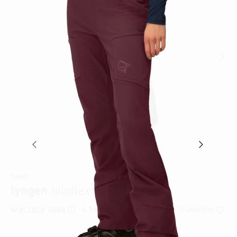 Norrøna Lyngen skibukse i damemodell, størrelse M. Buksen er rød og laget i teknisk materiale med membran, egnet for topptur, frikjøring og annen skiaktivitet. Den har forsterket stoff nederst på bena, glidelåser for ventilasjon og flere praktiske lommer. Passer til bruk med toppturstøvler og randoneeutstyr, samt til generelt bruk i fjellet vinterstid.
