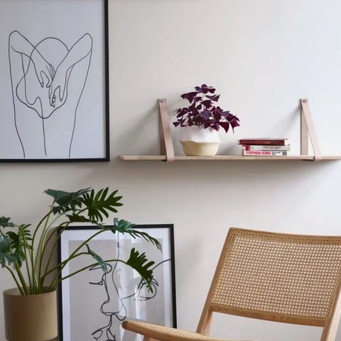 To pent brukte vegghyller fra Bohus med læroppheng.
