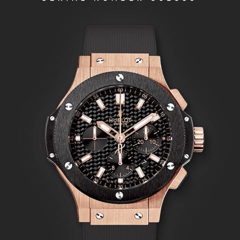 Sitter gummi rem på nå. Følger med ubrukt croco rem og reise etui.