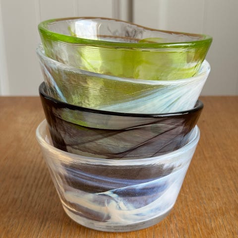 Kosta Boda glasskåler i farget kunstglass.