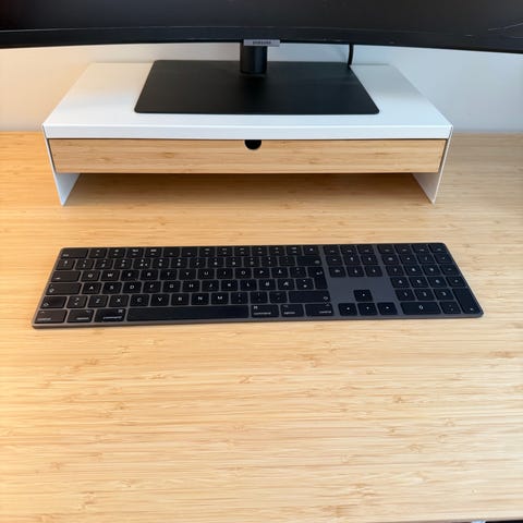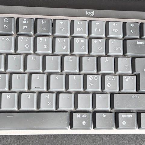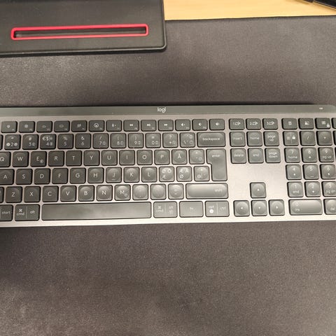 Logitech trådløst tastatur i full størrelse med numerisk tastatur. Tastaturet har lavprofiltaster og kompakt, slankt design i grå utførelse. Det kobles til trådløst og lades via USB‑C-port på baksiden. Egnet til bruk med stasjonær PC eller bærbar PC på kontor eller hjemmekontor. Lite brukt, ingen synlig slitasje. Ny pris på komplett 1050,-