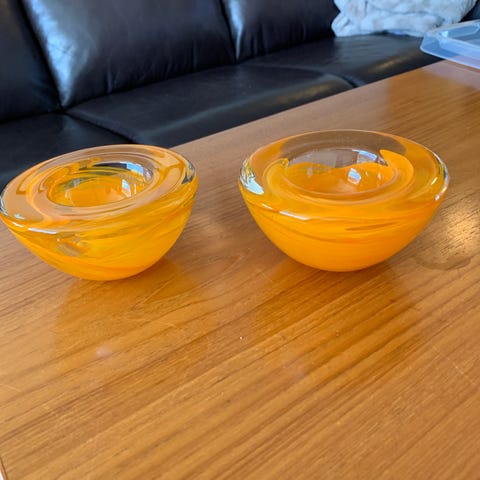 Originale Kosta Boda lyslykter i massiv glass. Gir nydelig fargespill når stearinlys tennes. Svært god stand uten skader. Selges enkeltvis eller samlet.