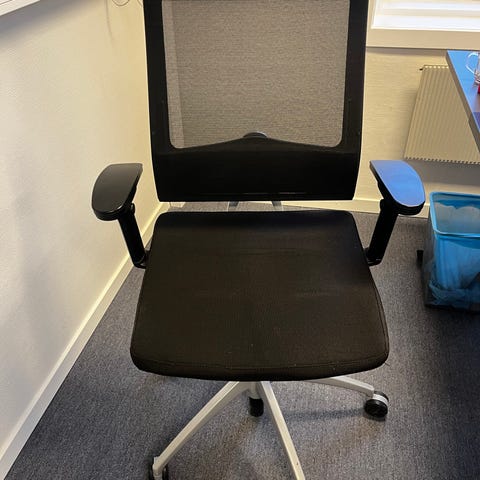 Ble kjøpt inn når kontoret flyttet, så god kvalitet og holdbarhet, også mye justeringsmuligheter.