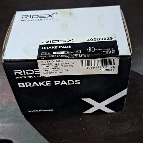 Uåpnet Ridex bremseskiver og bremseklosser!