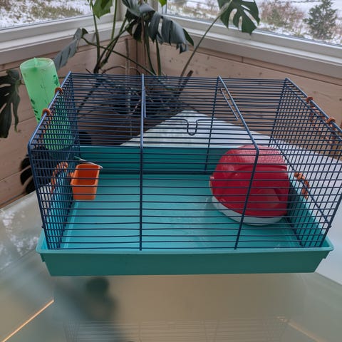 Smådyrbur i tre og glass/plexiglass med to etasjer. Buret har mål på ca. 100 x 50 x 61 cm (L x B x H). Øvre del har nettingtak for lufting og tilgang ovenfra, samt rampe mellom etasjene. Underetasje gir ekstra gulvplass til aktivitet og strø. Egnet for smådyr som for eksempel gnagere, avhengig av artens plass- og sikkerhetsbehov. Buret har dører for enkel tilgang til rengjøring og stell.