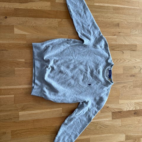 Ralph Lauren Polo genser for herre i størrelse XS. Genseren er hvit og laget av bomull. Klassisk rund hals med ribbestrikkede kanter på ermer og nederkant. Diskré Polo-logo brodert på brystet. Passer til hverdagsbruk og kan kombineres med både jeans og chinos.