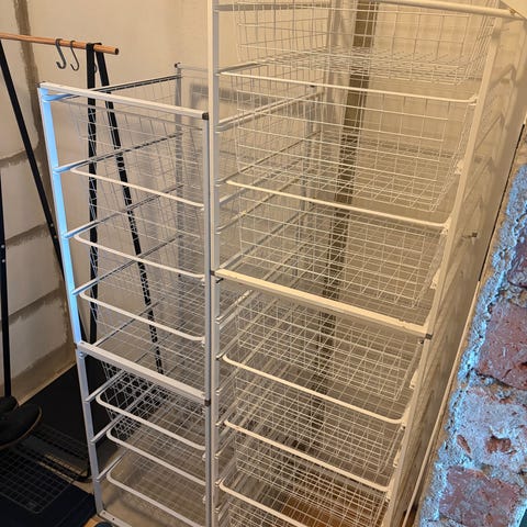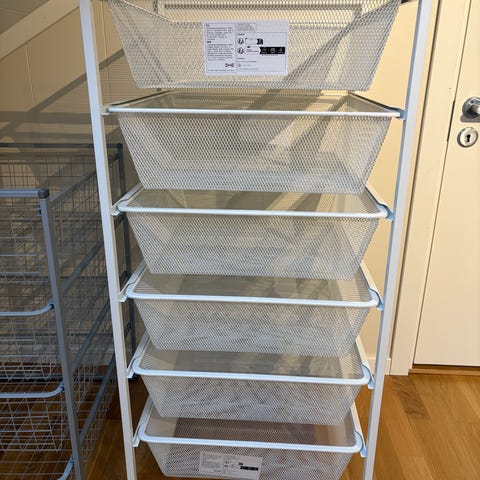 To kurvstativer med flere kurver som er lette å skyve ut og inn selges. Kurvstativet er frittstående og har god plass til klær og utstyr. Godt brukt, men funker som den skal.