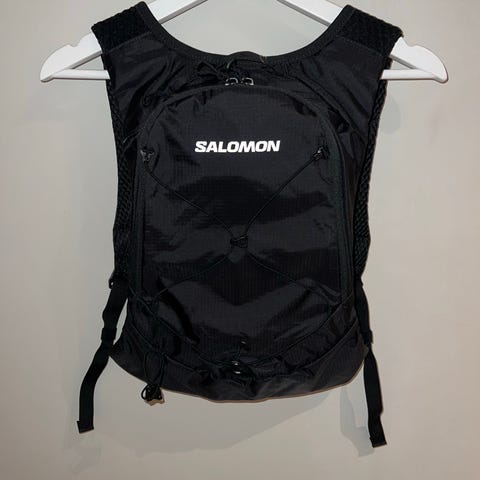 Salomon løpevest i svart farge. Vesten har flere lommer foran for oppbevaring av småting som nøkler, mobil eller ernæring. Mesh-paneler gir ventilasjon, og justerbare stramminger foran gjør at vesten kan tilpasses kroppen. Egnet til løping, terrengløp og annen utholdenhetstrening der man ønsker lett tilgang til utstyr underveis.